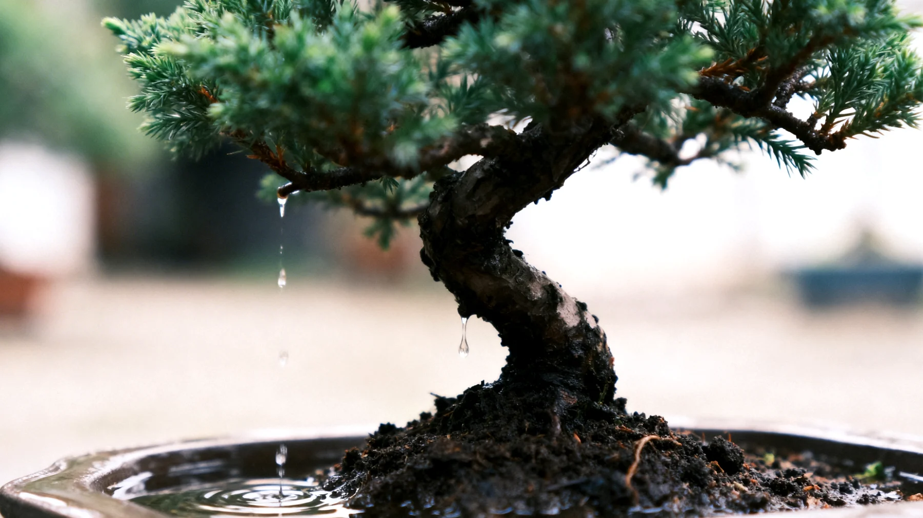 Besonders wichtig ist die Erkenntnis, dass Bewässerung nicht isoliert betrachtet werden kann. Sie steht in direktem Zusammenhang mit Standort, Substrat, Jahreszeit und Baumart. Ein Bonsai am sonnigen Südfenster benötigt andere Intervalle als einer im halbschattigen Flur. Ein tropischer Ficus hat andere Bedürfnisse als eine heimische Lärche. Die Routine muss daher flexibel bleiben und sich den wechselnden Bedingungen anpassen.
